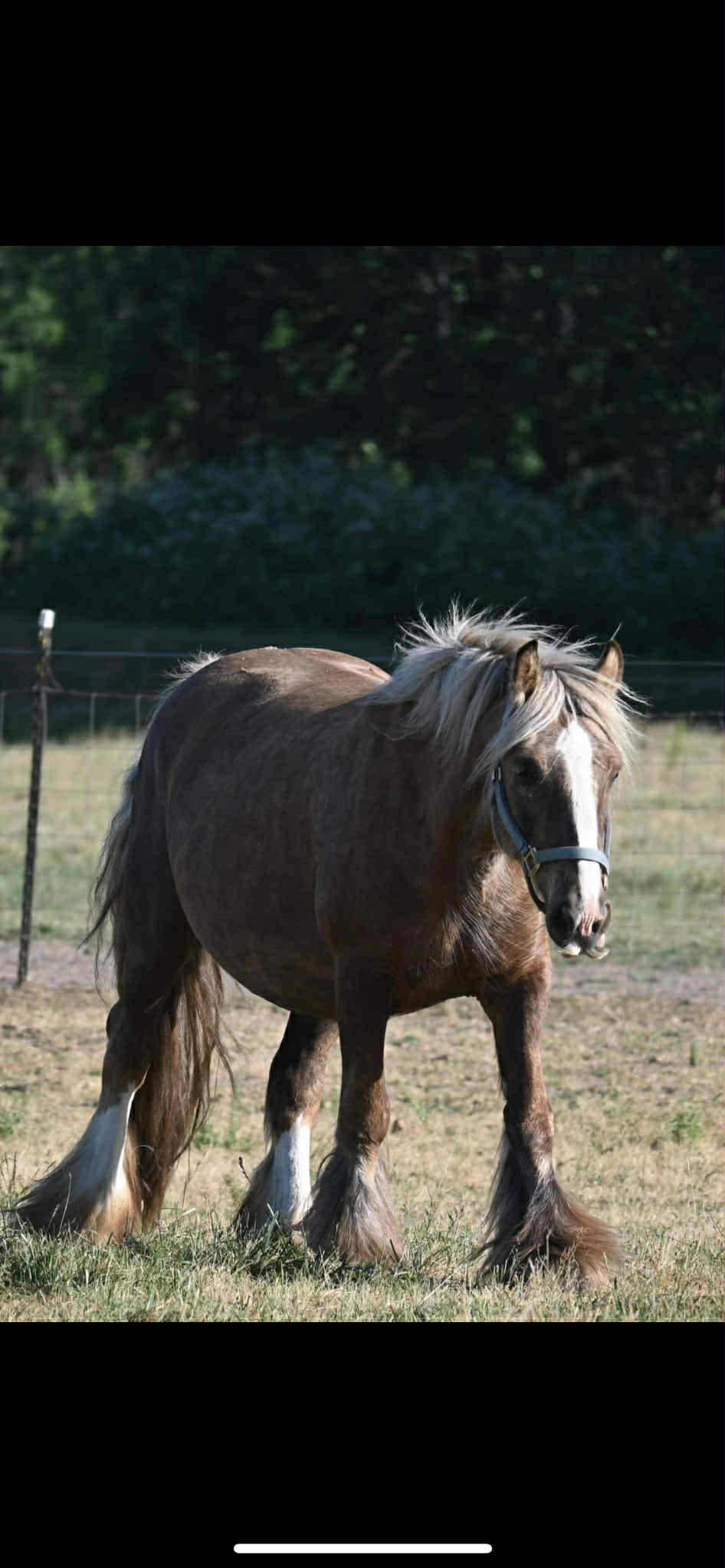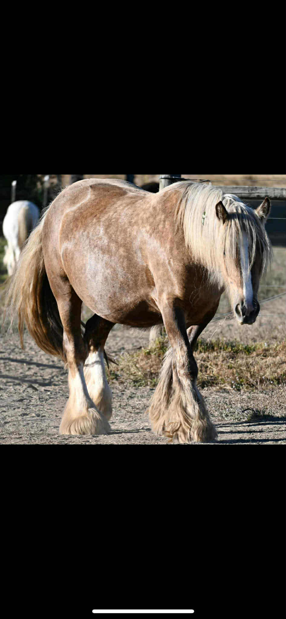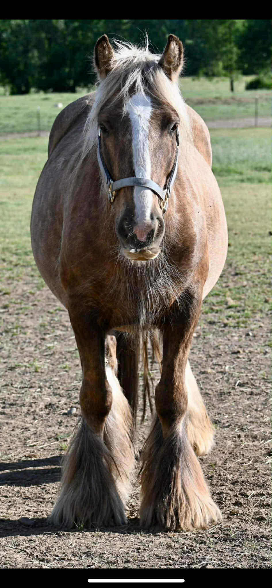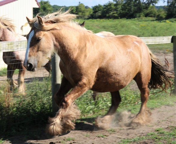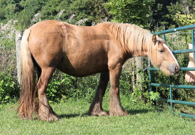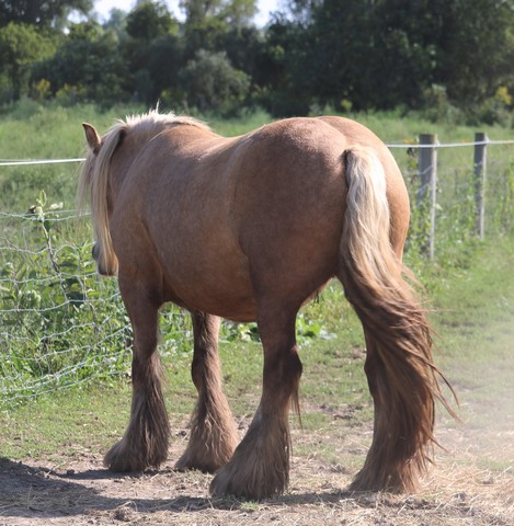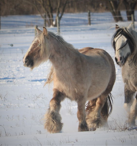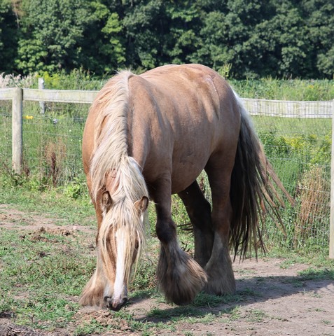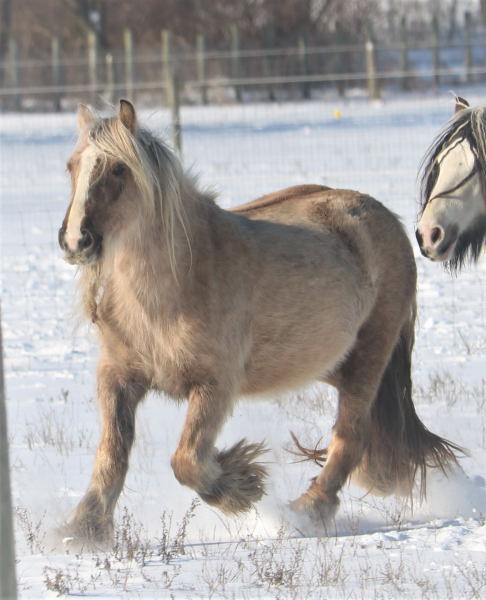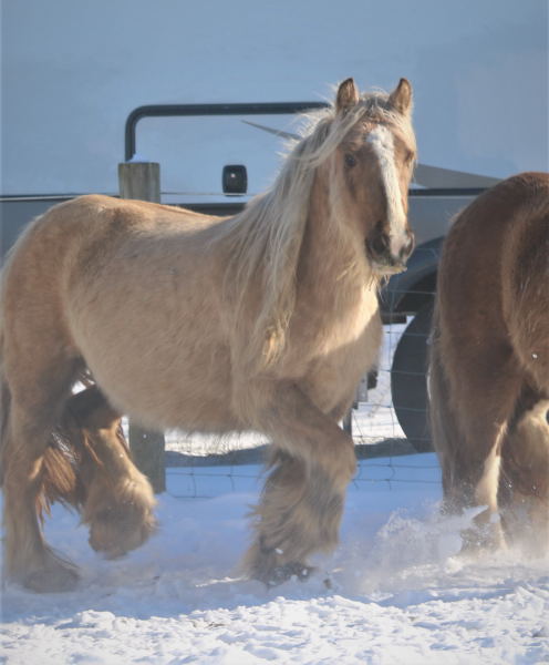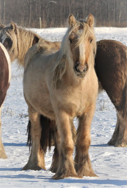 Koura is quite possibly the best Palomino mare we've ever seen. She is heavy, proper, has a beautiful head, outstanding conformation and temperament, not mention feather to spare. This incredible girl is a good mom, easy breeder, easy to foal, great in a herd, and with other mares and foals as well. Her bloodlines are top notch... SD bred dam, including Nobby & Lottery and her sire has some serious greats like Business, and Watsons horses on the top - along with the one and only Billy Boy aka Christies Horse. Old true proven lines with generations of well known top Gypsy horses.