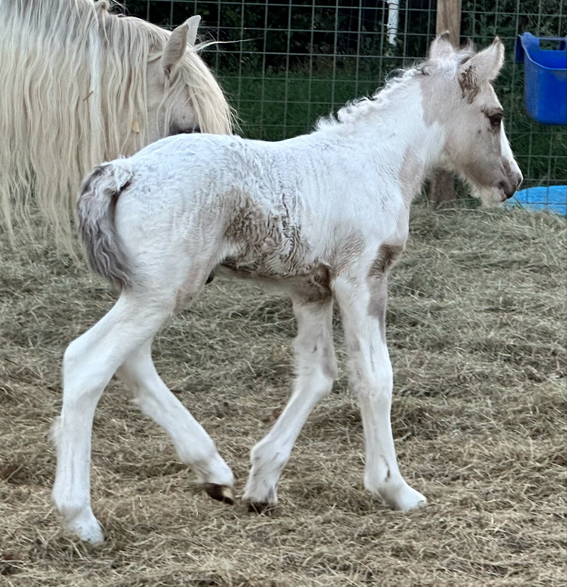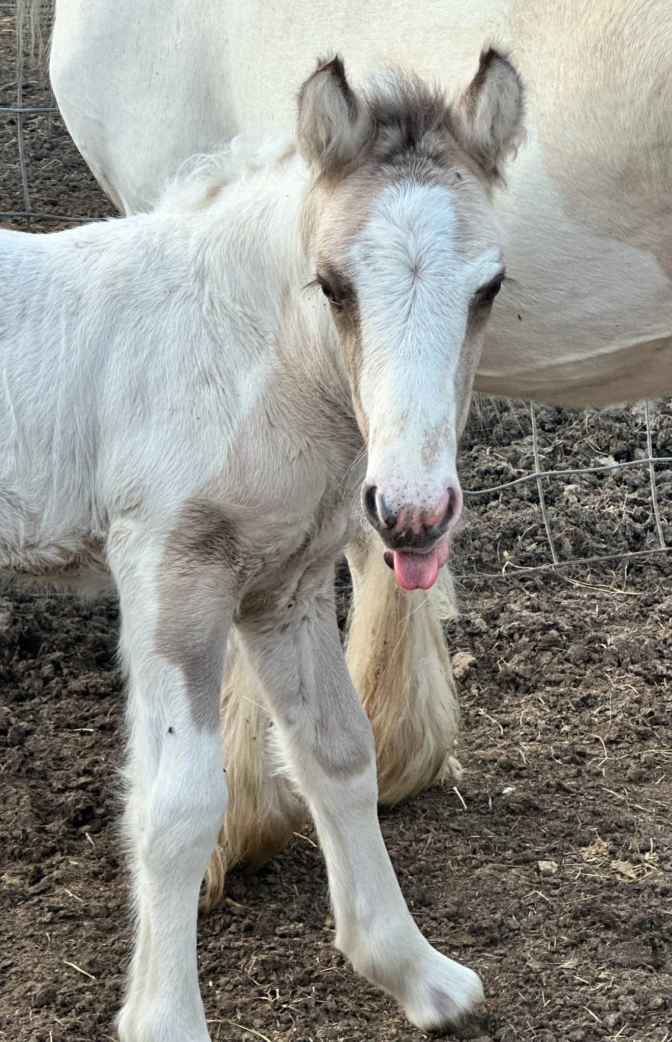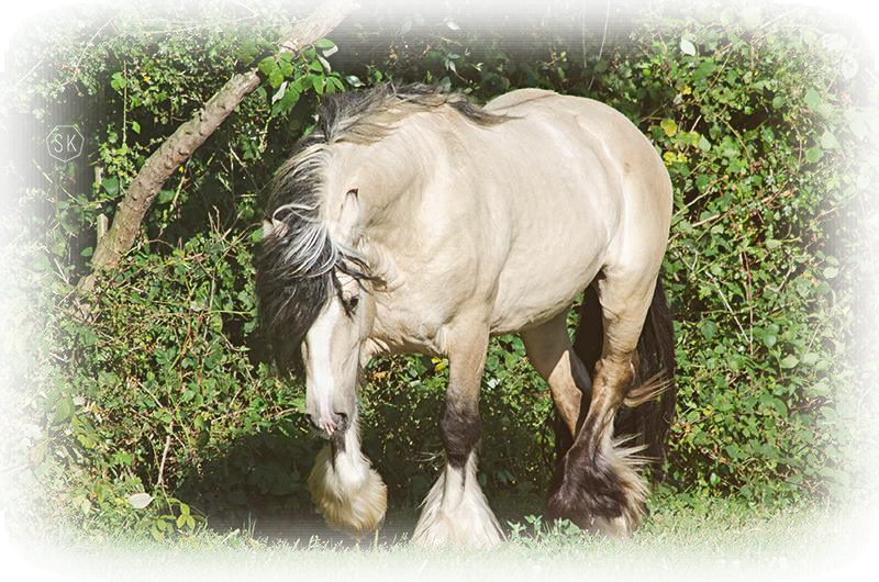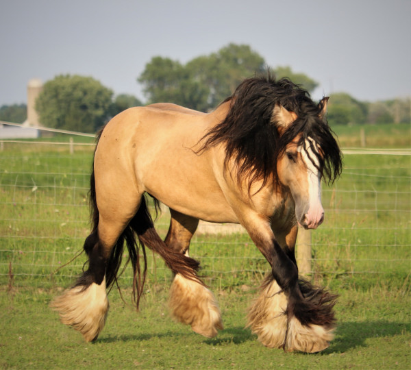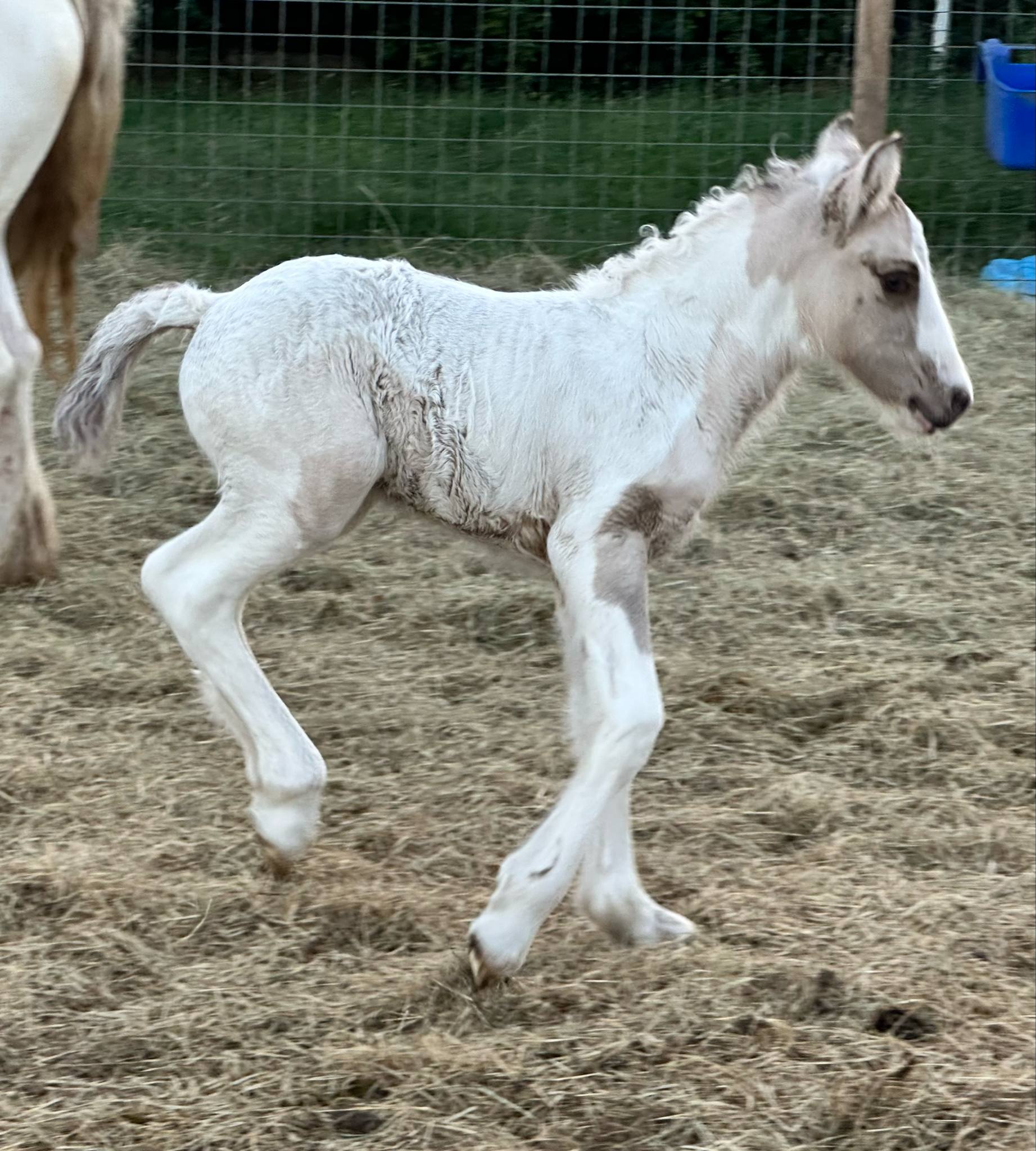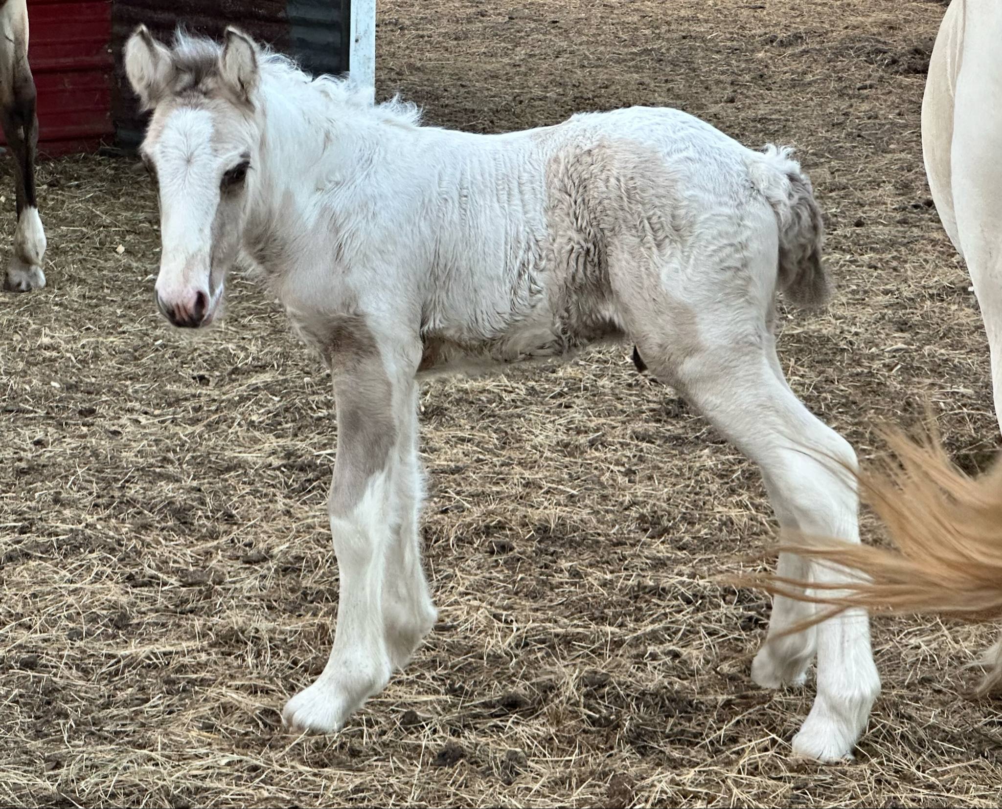 Stunning colt with all the fancy trimmings you could ask for. Beautiful head, tippy little ears, beautiful neck and short couple back. Combined with nice solid bone and lovely feather, this boy is a winner all the way around. He has Silver, Cream, and Dun to fit any of your mares, or be a showstopper gelding. Tons of potential with little boy and his sire is KNOWN for producing top quality Gypsy Vanners. Wonderful bloodlines back up this little colt and the foundation is set for whatever you'd like to do with him.