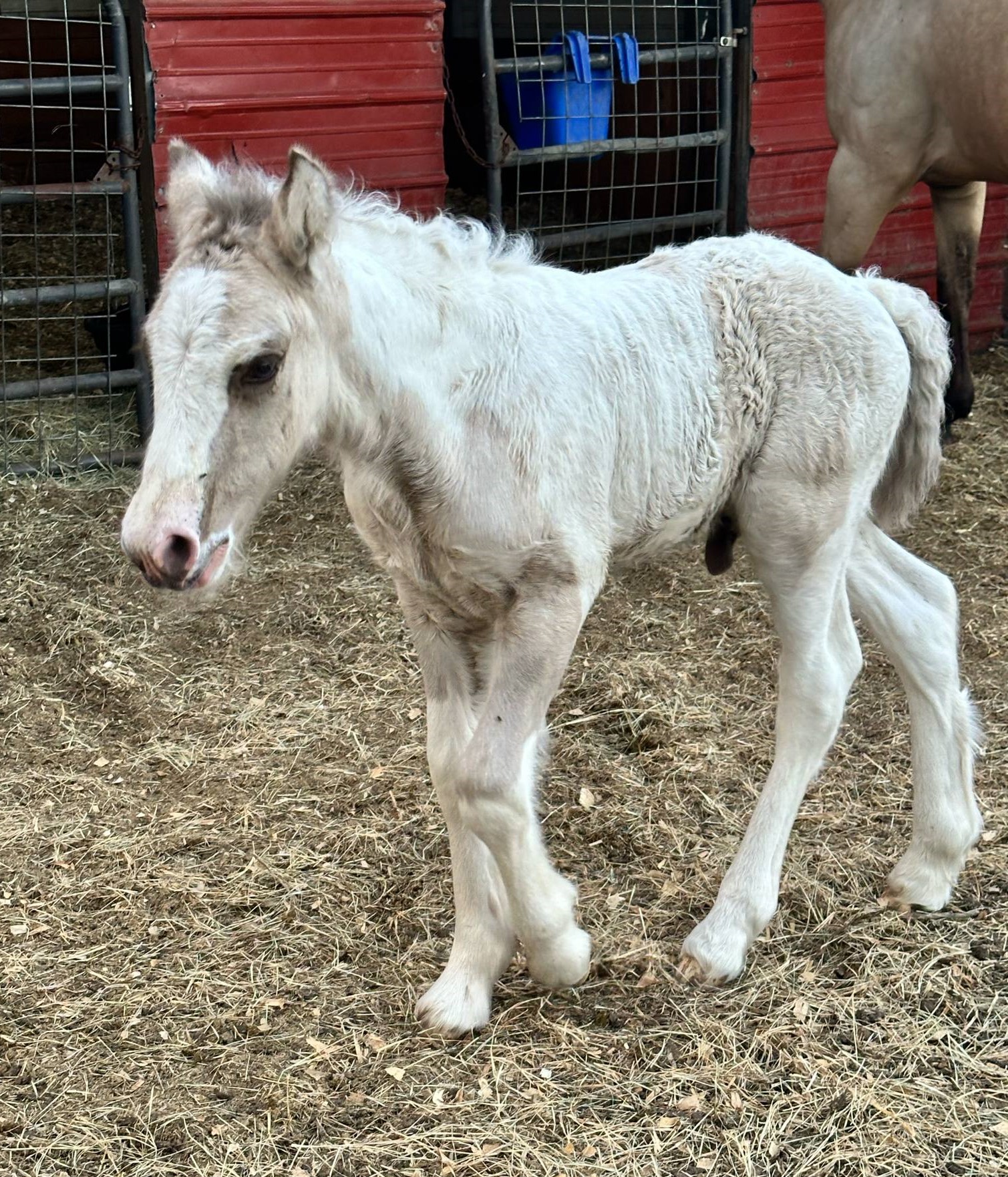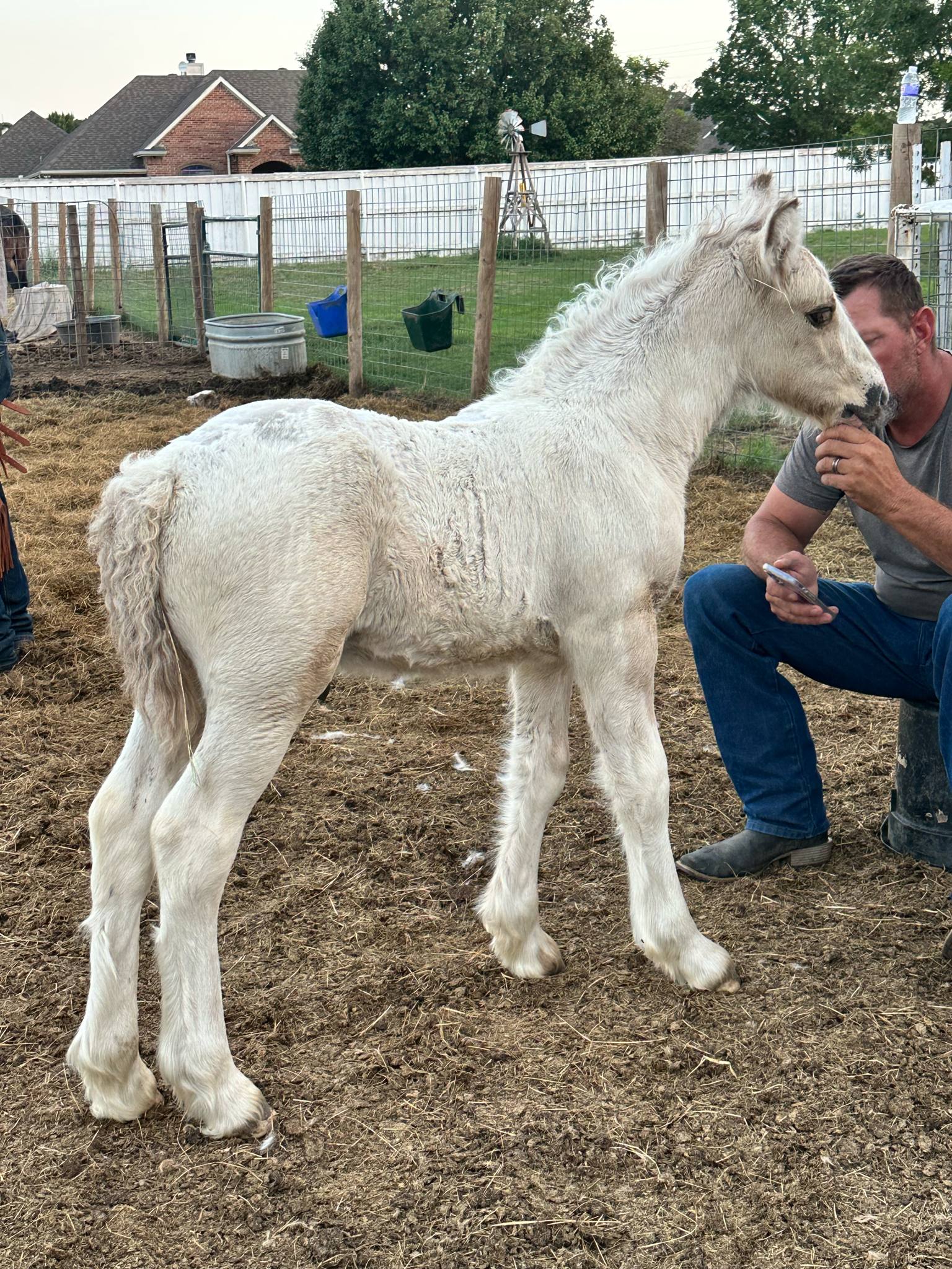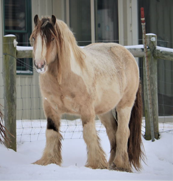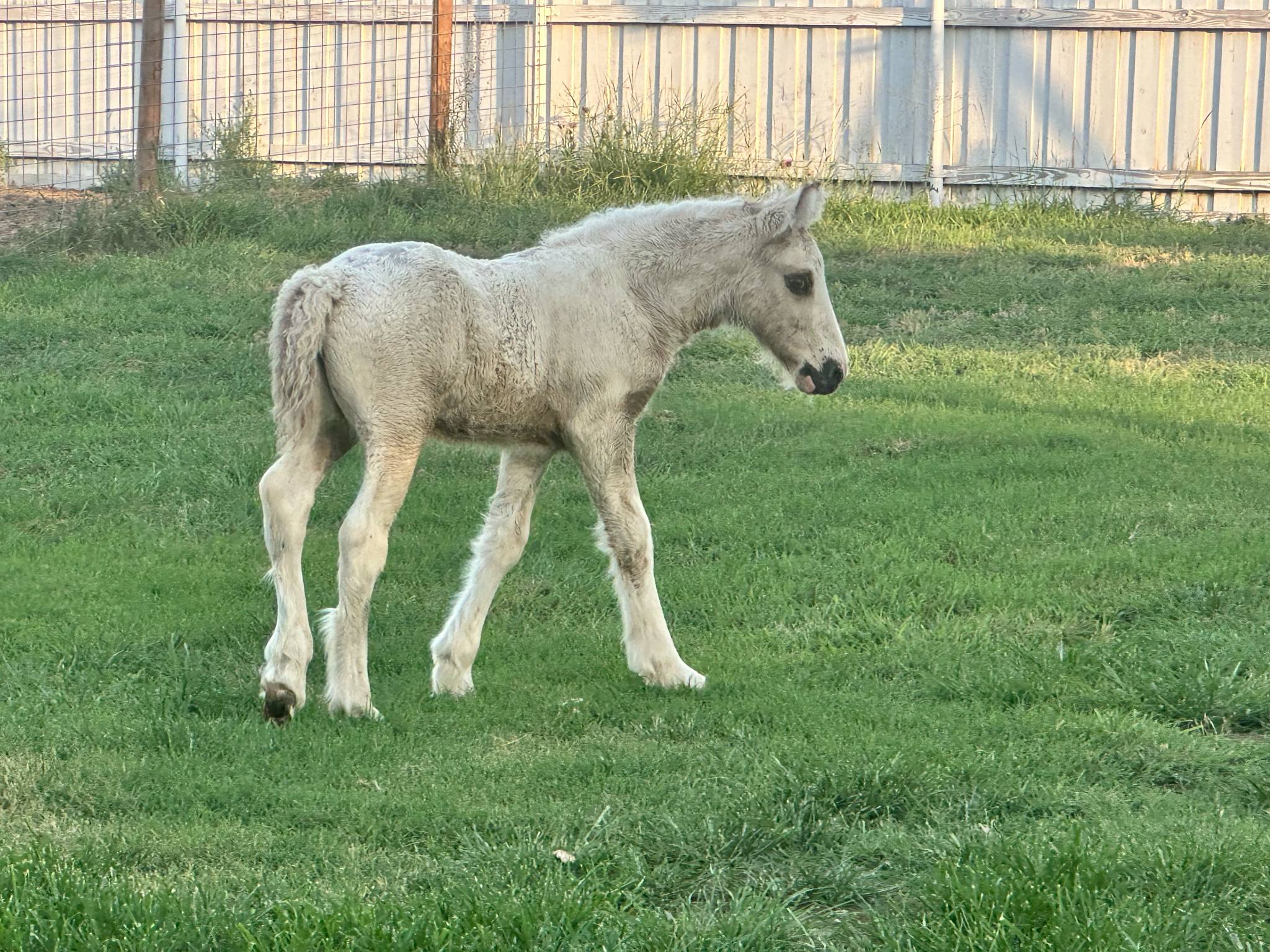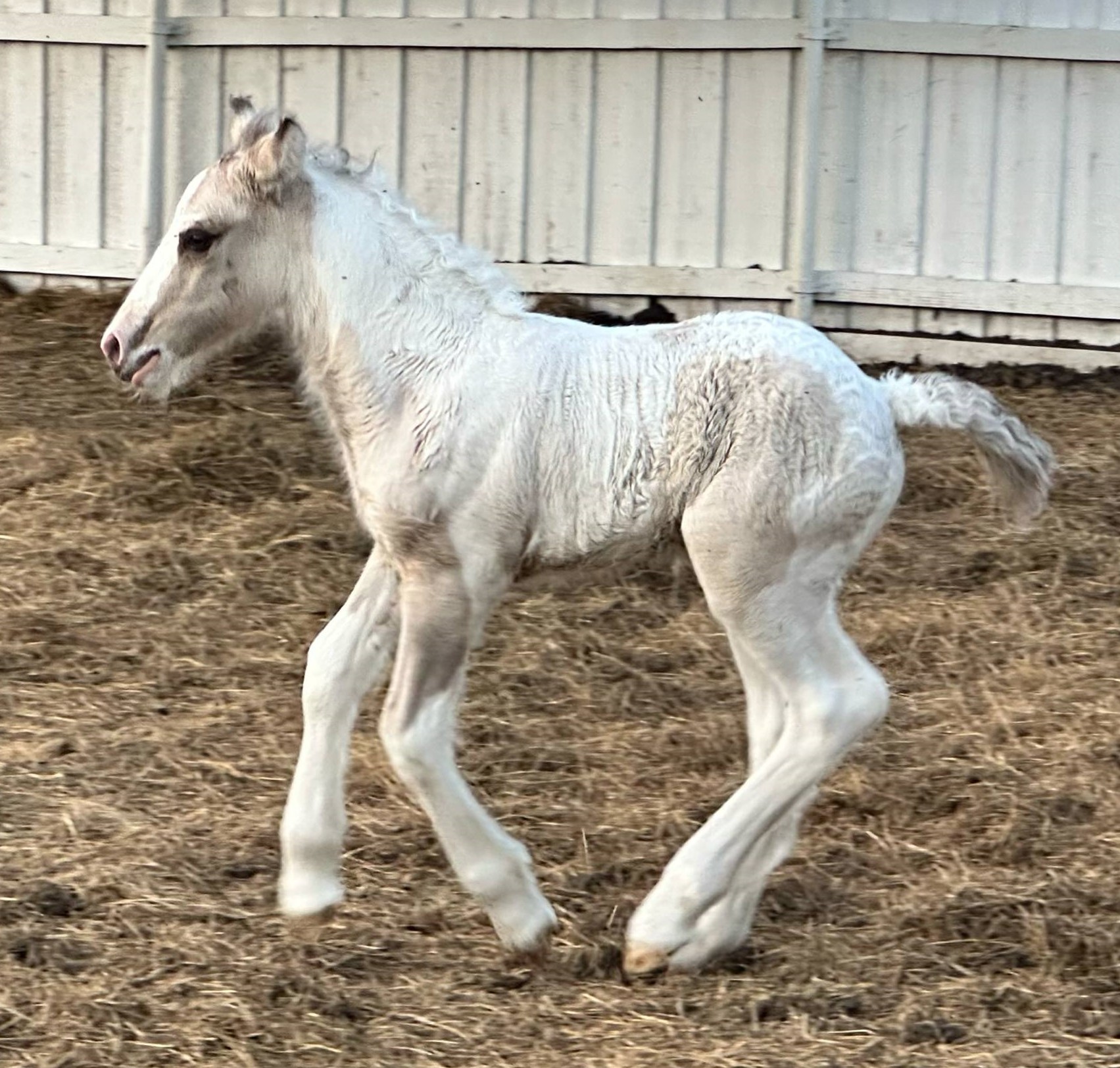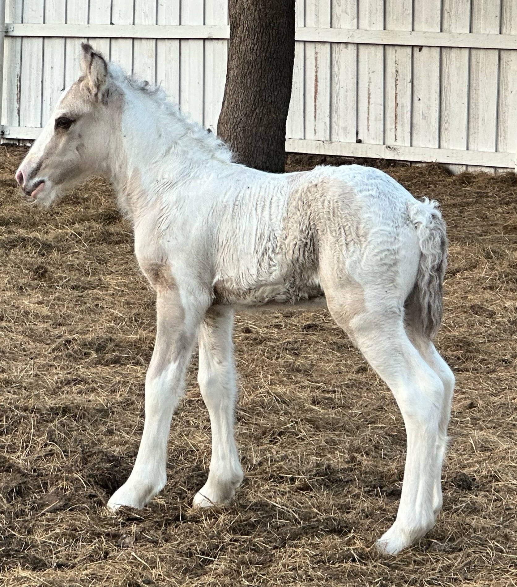 Stunning colt with all the fancy trimmings you could ask for. Beautiful head, tippy little ears, beautiful neck and short couple back. Combined with nice solid bone and lovely feather, this boy is a winner all the way around. He has Silver, Cream, and Dun to fit any of your mares, or be a showstopper gelding. Tons of potential with little boy and his sire is KNOWN for producing top quality Gypsy Vanners. Wonderful bloodlines back up this little colt and the foundation is set for whatever you'd like to do with him.